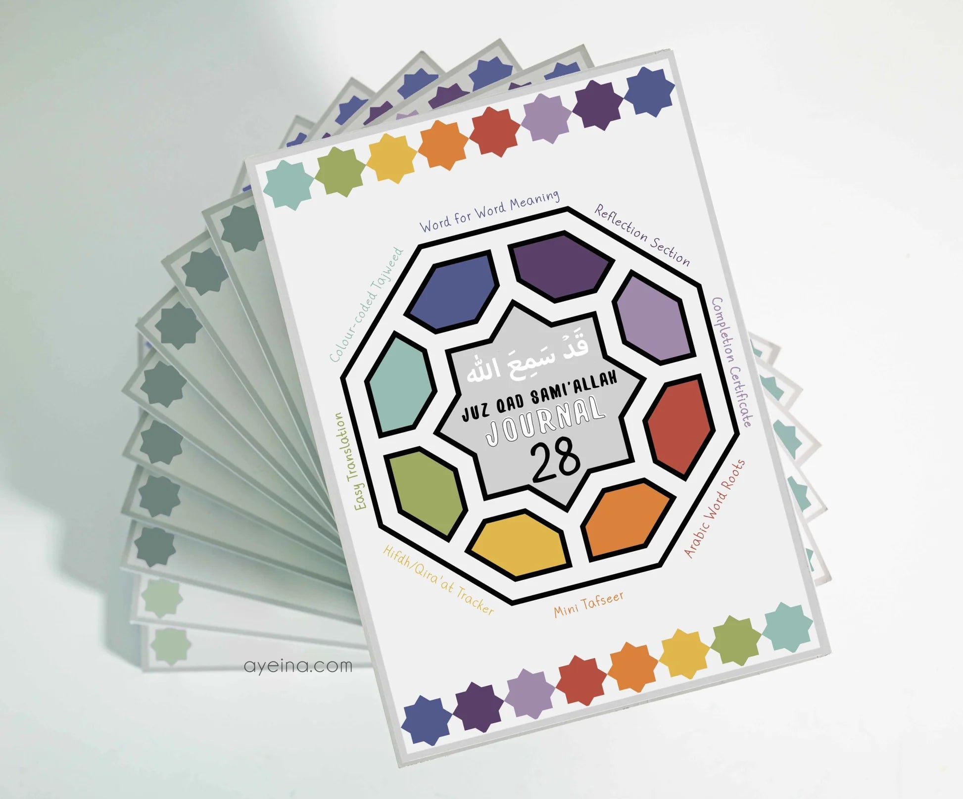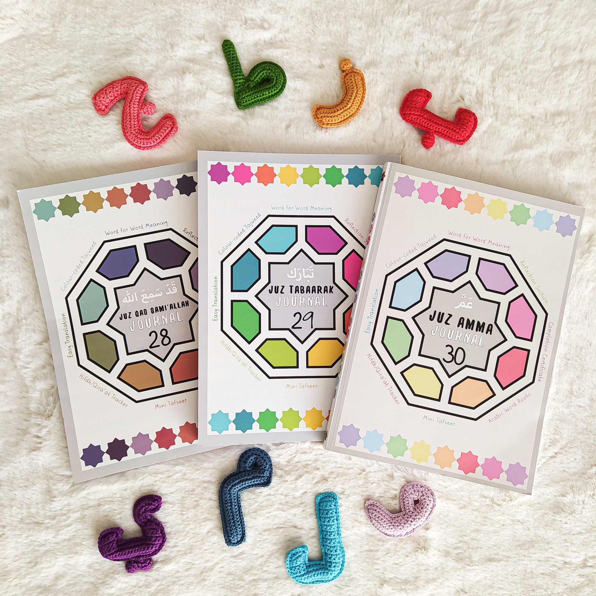 Discover the transformative journey of #JuzJournals, a tool designed to empower children with a profound understanding of the Quran and cultivate a deeper connection with Allah. This journal serves as a comprehensive and colorful resource, aimed at enhancing children's knowledge of Arabic, fostering reflection upon the words of Allah, and encouraging practical application in their lives. The overarching goal is to instill a genuine love for Allah's book in young hearts, guiding them to turn to the Quran in moments of joy and grief. This book not only aids parents and teachers in tracking a child's complete Surah (recitation, memorization, or understanding of the Quran) but also facilitates progress tracking Aayah by Aayah.