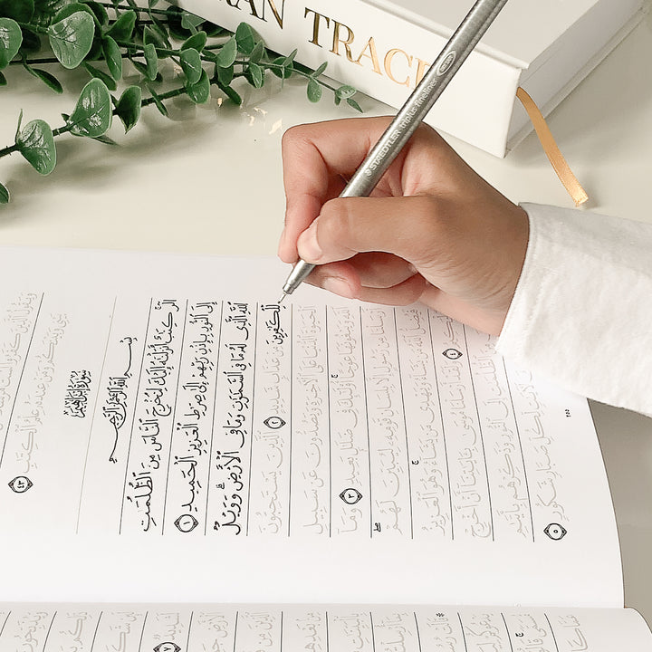 Innovative, dynamic and faith inspired, Quran Trace presents the world’s leading authenticated traceable Quran in the uthmani (Medina) script using the naskh calligraphy style. Featuring the entire Quran in a 15-line traceable format, this mushaf facilitates for a unique combination of visual, auditory, and kinaesthetic/tactile learning styles.