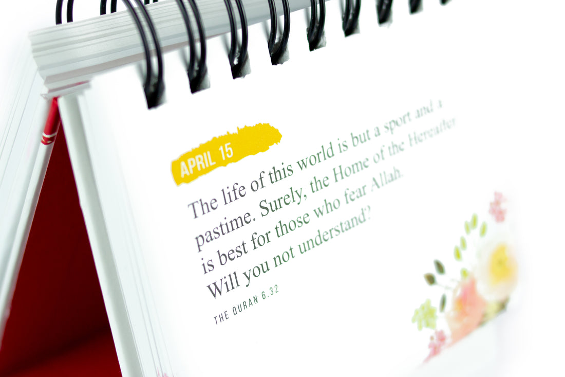 This beautiful calendar emphasizes the transformative power of Quranic verses in navigating life's challenges, through each day.