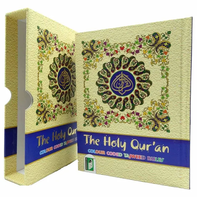 This humble effort is an attempt to facilitate the Tilaawah of the Quran with Tajweed. Seven different colours shades have been used and each colour represents a Tajweed Rule. The Colour Coding system has been introduced to highlight the Rules of Tajweed found in the Quranic text. Having a colour block on the Tajweed Rule allows he reciter to emphasise the accent, phonetics, rhythm and temper of the Quranic recitation. It is imperative for the reciter to have a working knowledge of the Rules of Tajweed in order to know how to pronounce the letters on which emphasise has to be laid.
